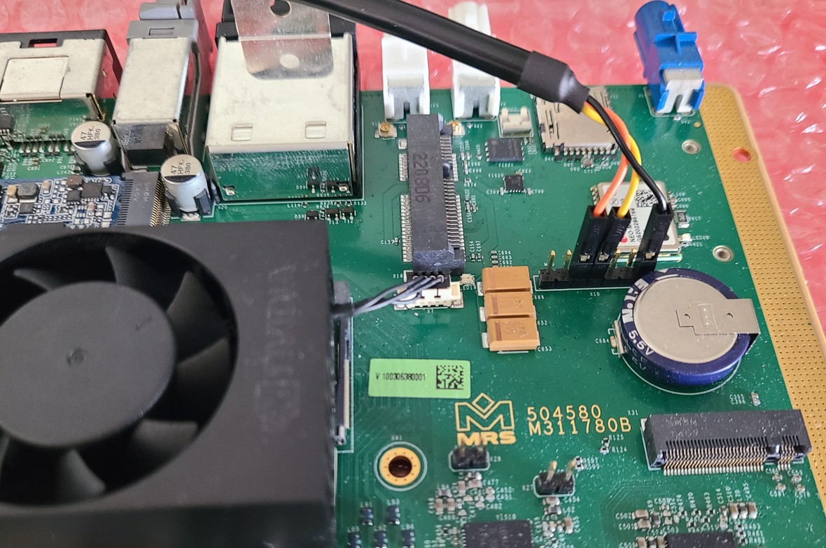 Section titled “Serial Console (root access)”The serial console connector is located on the top side of the mainboard. The connector pinout is as follows: